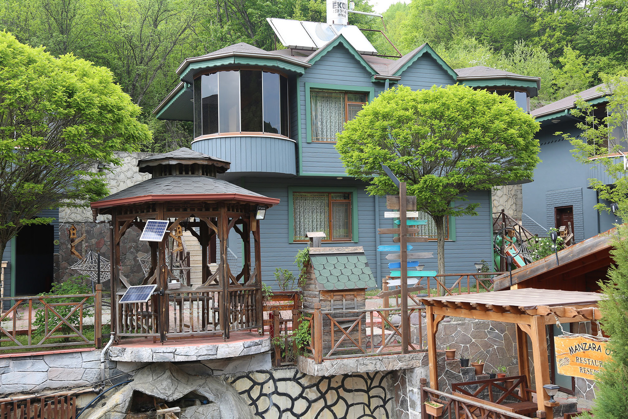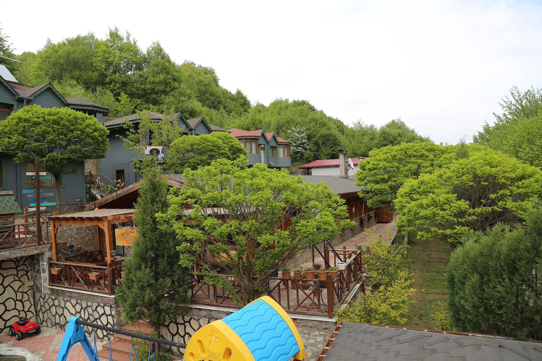 Abant Manzara Evleri tesisimiz 4'ü dubleks olmak üzere toplam 16 oda ve nisan 2023 tarihinde eklenen 2 adet bungalov ev ile konaklama hizmeti veren bir aile otelidir. Tüm oda tiplerinin giriş kapıları her birinden bağımsız olarak tasarlanmış size özel girişleri olan çelik kapılardan oluşmaktadır (bungalov evler hariç). Evlerin önünde toplam 100 kişi kapasiteli, dağ manzaralı ve şömineli kahvaltı salonu bulunmaktadır.
